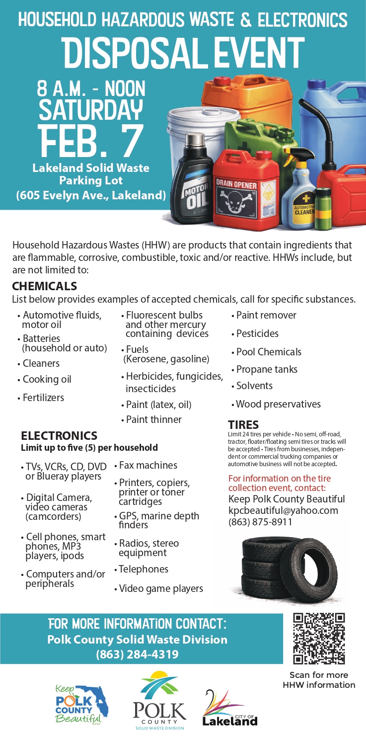 More information can be found at How To Get Rid of Household Hazardous Wastes - Polk County Government (polk-county.net)