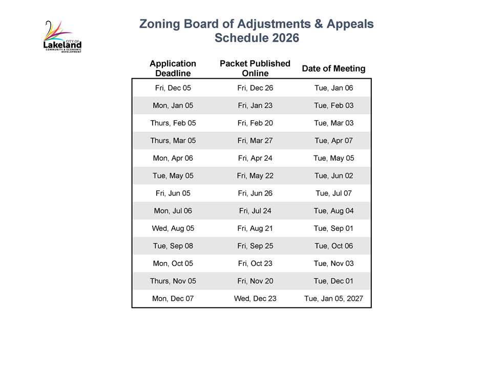 The Zoning Board of Adjustments and Appeals meets every first Tuesday of each month at 9:00 AM in the City Commission Chamber of City Hall to review variance requests. The Board is made up of seven citizens appointed by the City Commission and is assisted by the staff of the Community & Economic Development Department. The concurring vote of five members is necessary to grant a variance. To apply for the Zoning Board of Adjustments and Appeals please visit the City Clerk page.